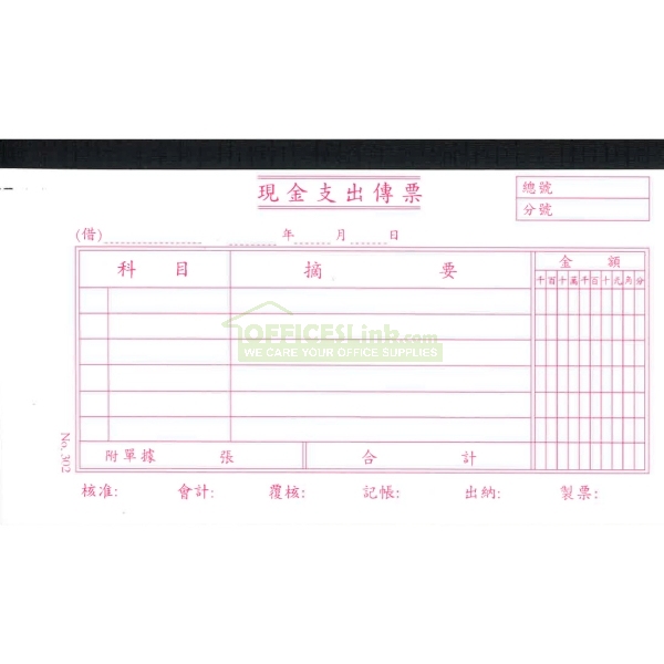 商品名稱:302 現金支出傳票 商品編號:OL002807 品牌:PLOTTER 上架時間:2015-01-25 商品淨重:0克