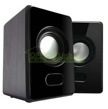 2.5W x 2 輸出 | 獨立音量控制鈕 | 仿木製外殼 | USB 隨插即用,無須安裝軟件,方便易用 | USB 供電,毋須外置電源 | 適用於 Windows 及 Mac OS 作業系統 | 產品尺寸: 73W x 85D x 115H (mm)