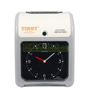 商品名稱:TIMMY 7S 電子打咭鐘 (雙色) 商品編號:OL004201 品牌:TIMMY 上架時間:2015-02-25 商品淨重:0克 型號: T-7 功能: - 雙色印刷(可選) - 報時信號 - 自動輸入/輸出卡縫 - 編寫程式簡化操作 - 全自動萬年曆 - 點陣打印令印刷更鮮明,更銳眼 - Ni-Cd電池可支援多達1000次使用(可選) 現有衍生型號 : T-7S(雙色印刷) 自攜保用一年